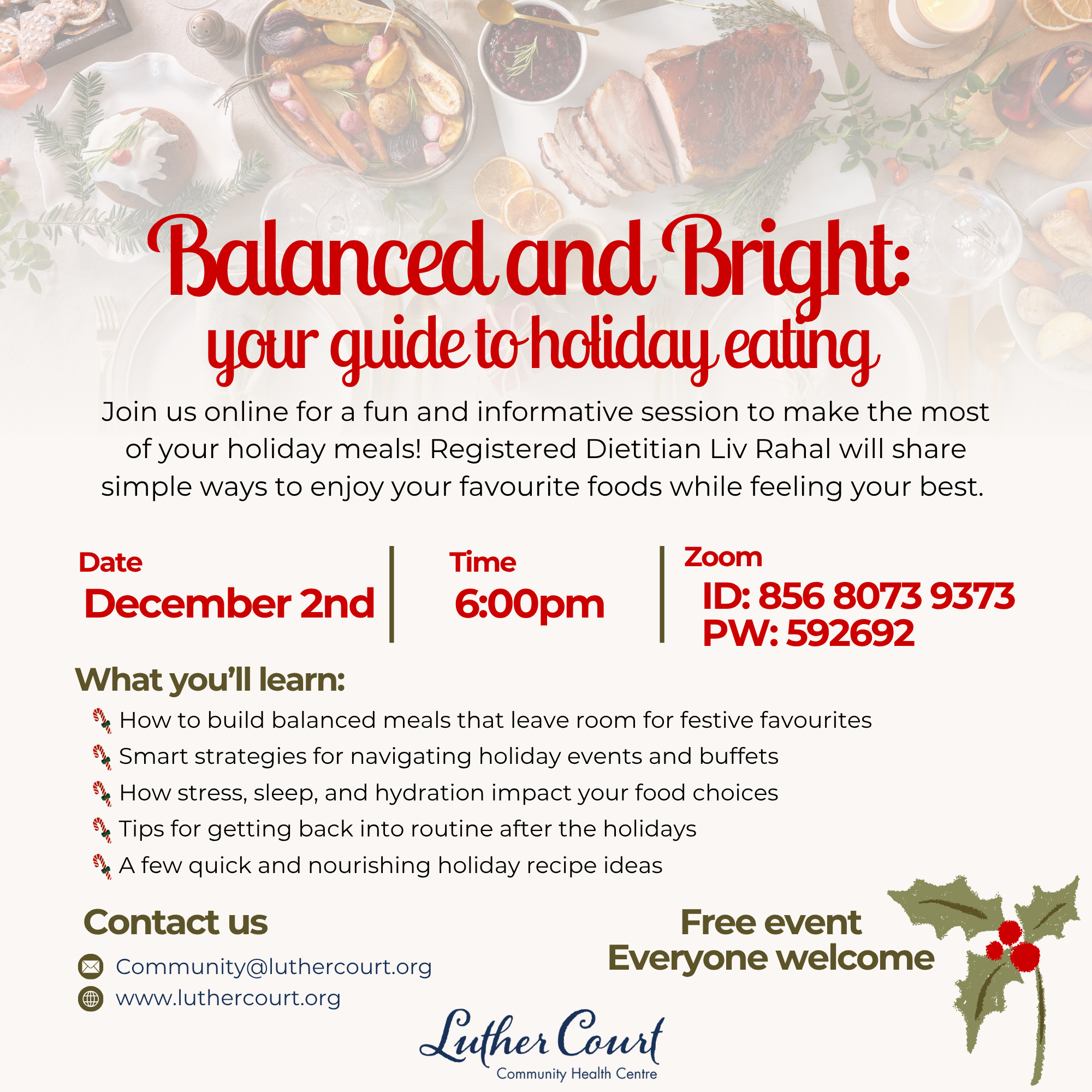 Join us online for a fun and informative session to make the most of your holiday meals! Registered Dietitian Liv Rahal will share simple ways to enjoy your favourite foods while feeling your best.